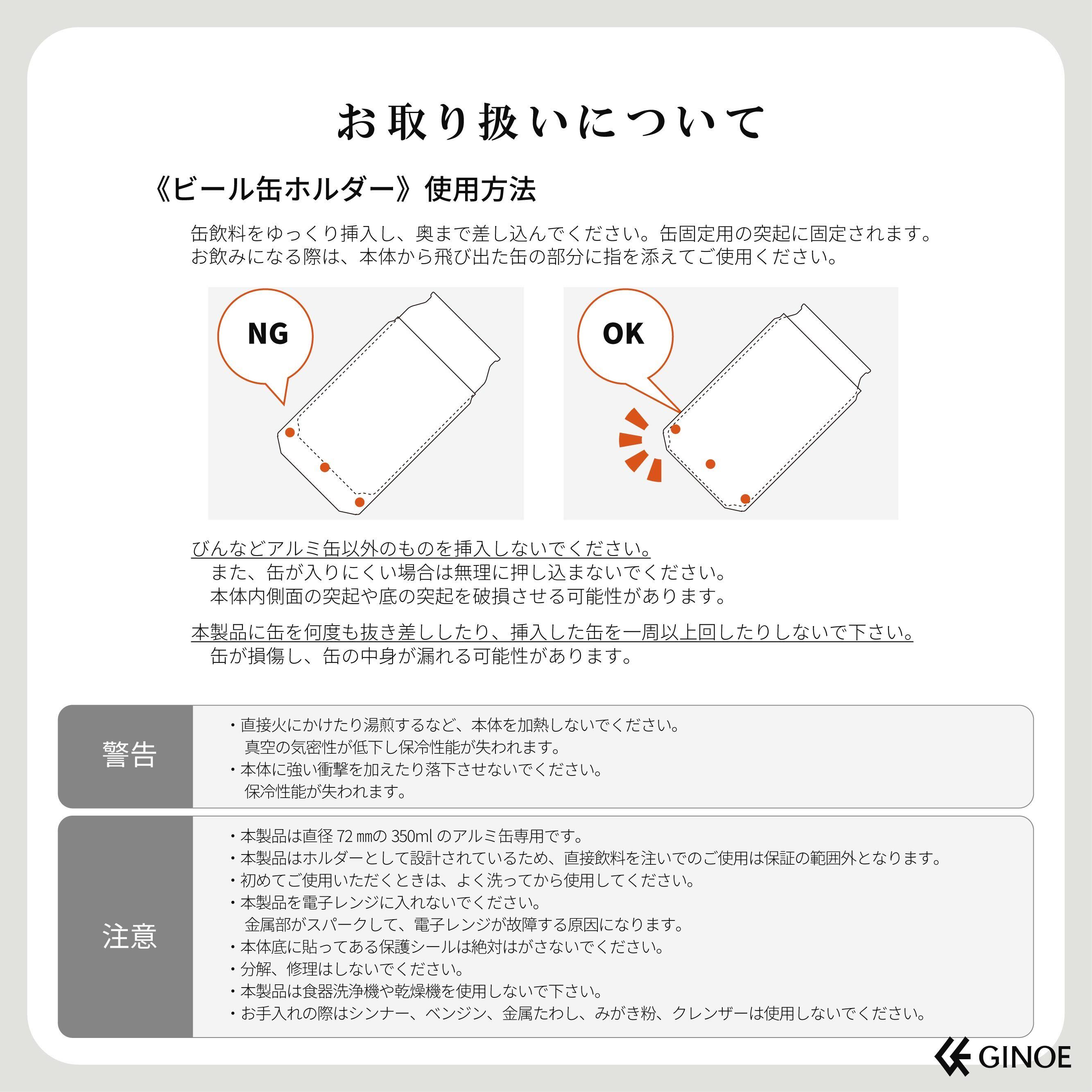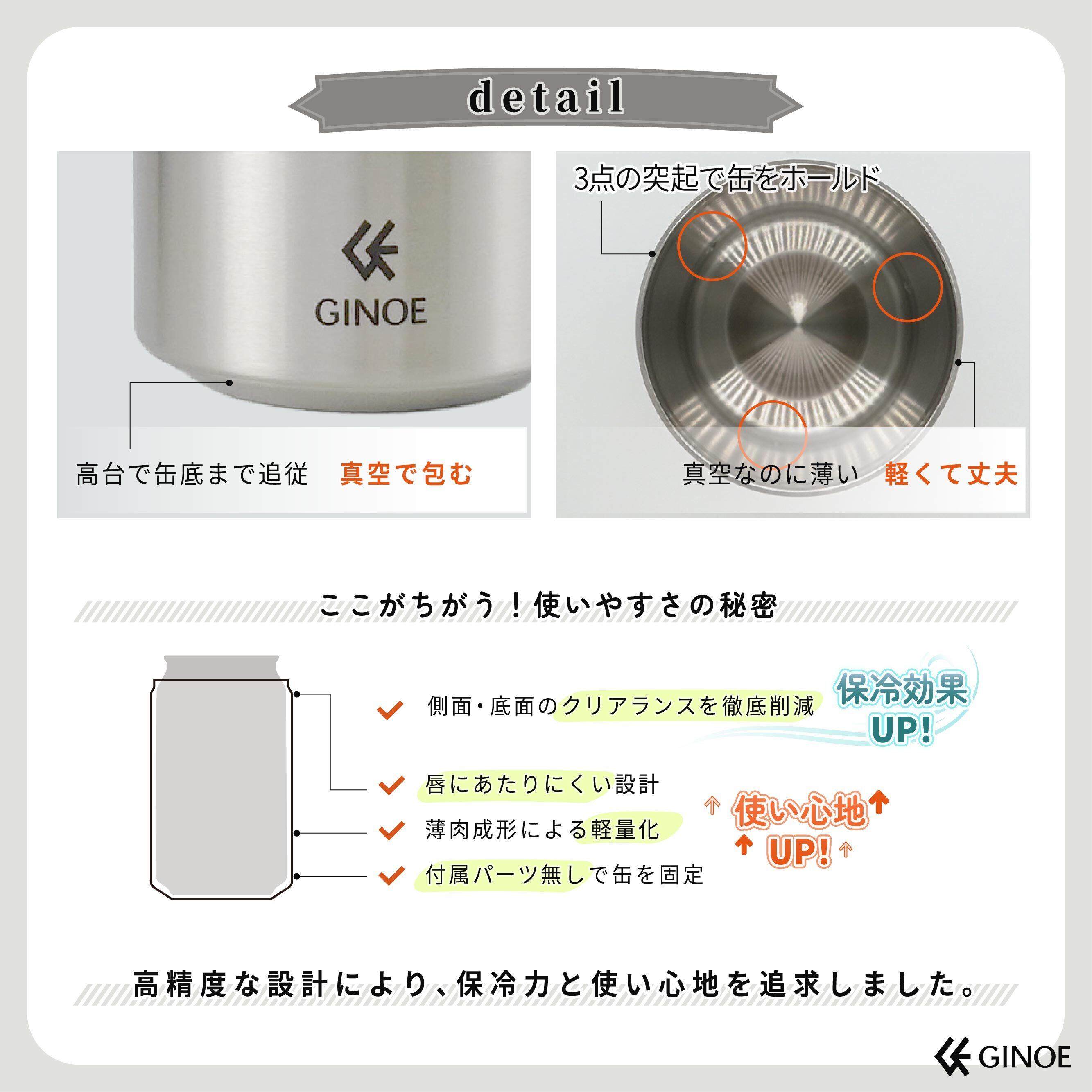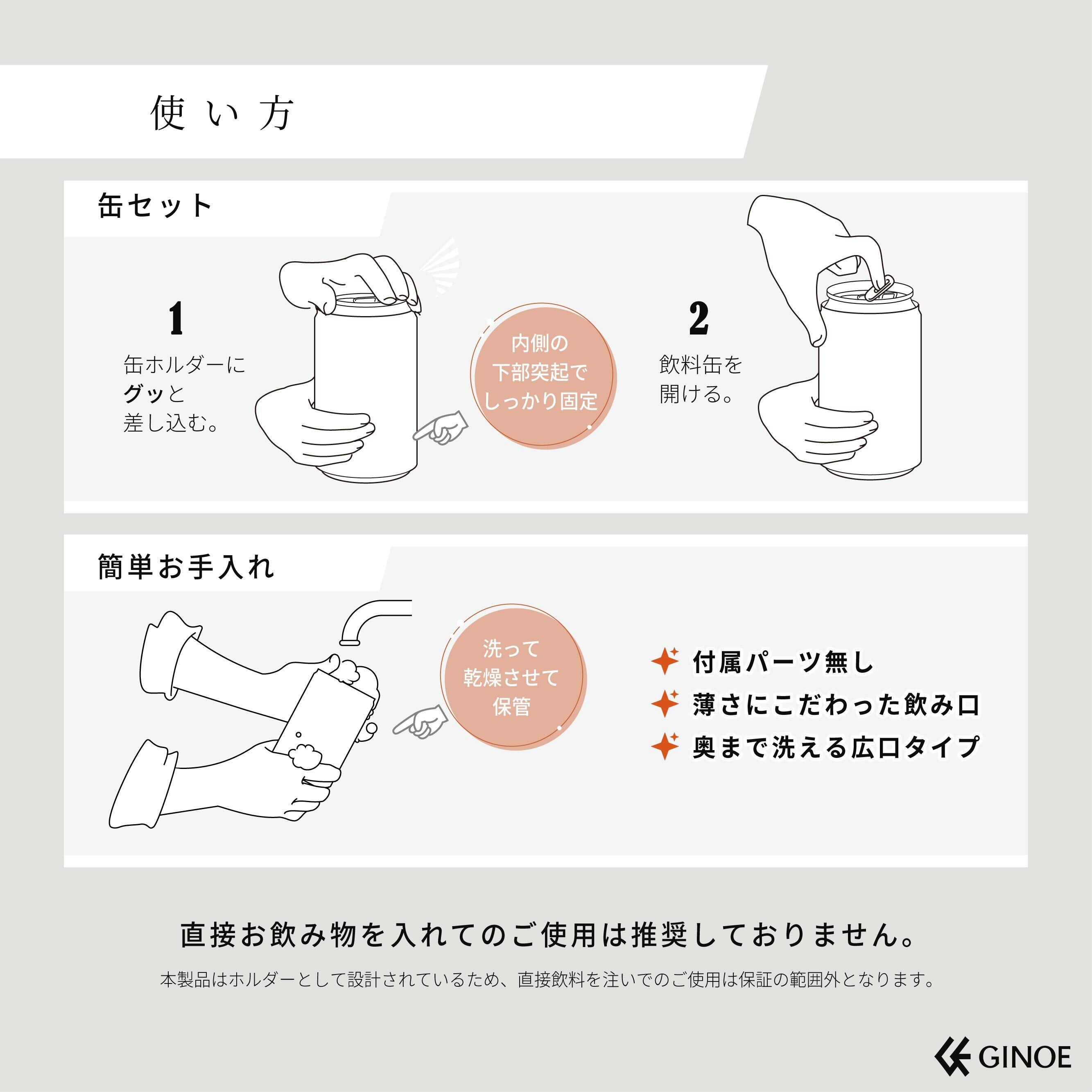 また、内面の微細な突起により缶の脱落を固定します。付属部品を必要としない無駄のない作りで、使用前から飲み終わりまで快適であることにこだわりました。